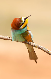 Por la tarde, volvimos a intentar los abejarucos, al lugar de las 400 parejas y esta vez sí estaban por allí, ruidosos , revoloteando aqui y allá. Pusimos los hides rápidamente y finalmente empezaron a entrar al posadero. Esto nos dio la oportunidad de captar las imágenes siguientes. Pero una tormenta que amenazaba desde el horizonte y que lenta pero inexorablemente terminó por llegar, hizo que de manera súbita los abejarucos desaparecieran para no volver más en toda la tarde. No fue mucho tiempo el que nos concedieron pero fue más que nada. Estas son algunas de las pocas imágenes que pudimos caputrar.